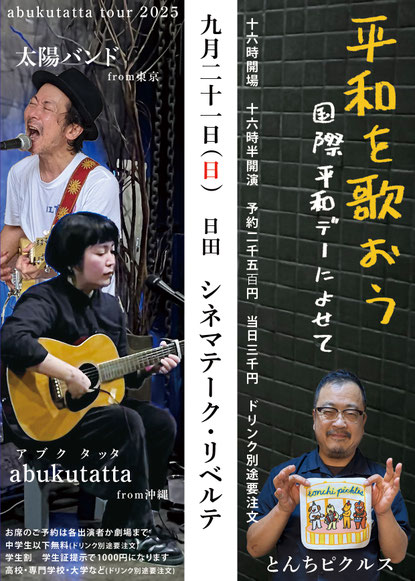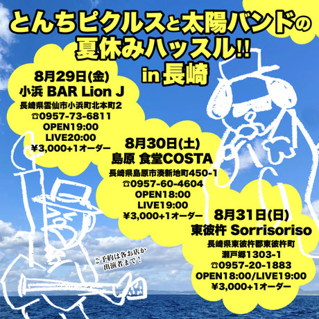 出演|三心バンド(堀内ヒデ俊・花岡亨・maho)・太陽バンド・とんちピクルス