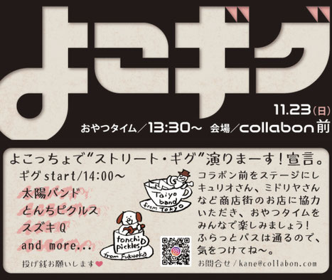 10/11(土)に広島県呉市で開催される「街の森アトリエ」のライブステージ「サウンドリンク」に出演します。